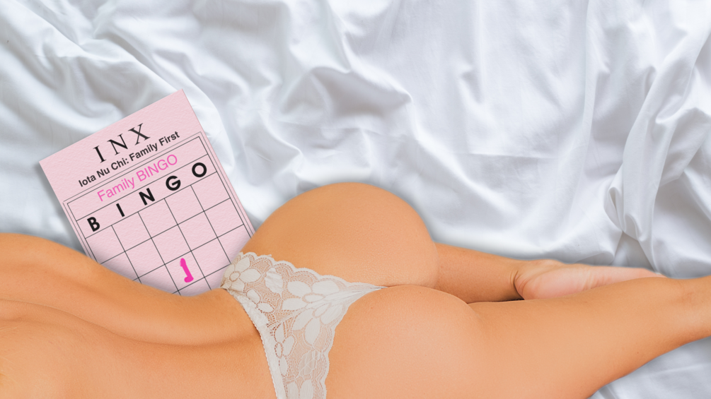I'm pledging the sorority Iota Nu Chi (their motto is "Family First"), and in order to become a member, I need to be one of the first pledges to complete Family BINGO during Thanksgiving break. That means I need to complete five intimate sex acts with my family members. While most of the sex acts are one-on-one, it turns out that one needs to be done with three brothers, and luckily I have a BIG family, so this should be no problem!