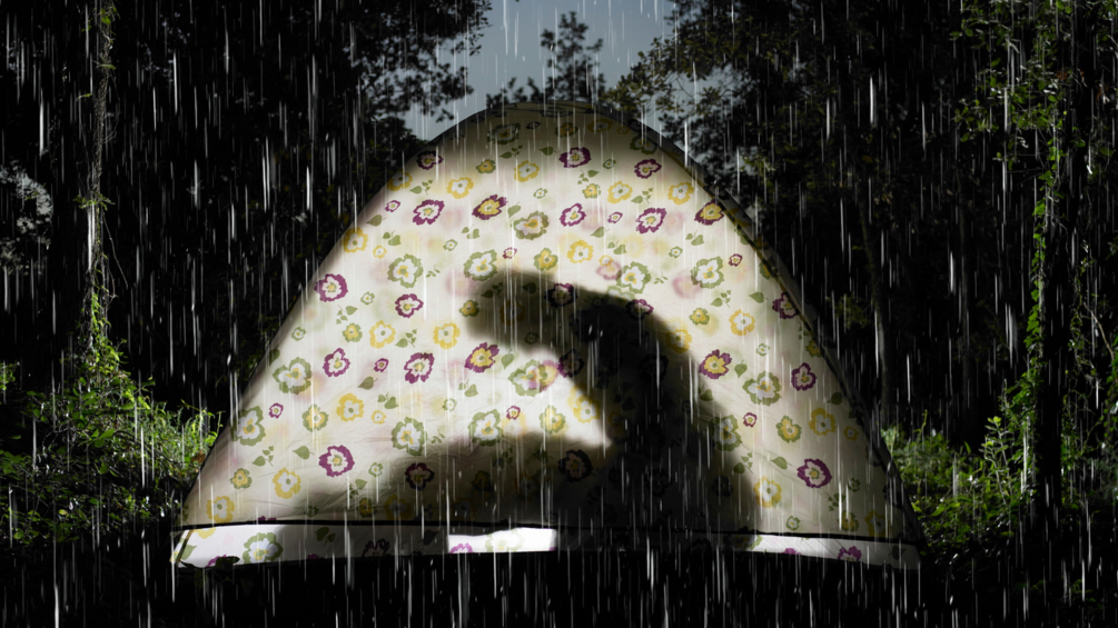 You're going on a camping trip with the guys, and you come light-handed since you were going to sleep in one of their tents, and you were going to borrow a sleeping bag. When you get to the camp site, the only person there is your high school bully. She claims it was the other way around and you bullied her. It starts storming, so you need to go into her tent. It doesn't appear that the guys are going to show up...