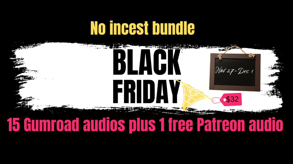 Black Friday sale! All 15 of my Gumroad audios that don't include family members, plus one free Patreon audio. Over 6 hours of audio!